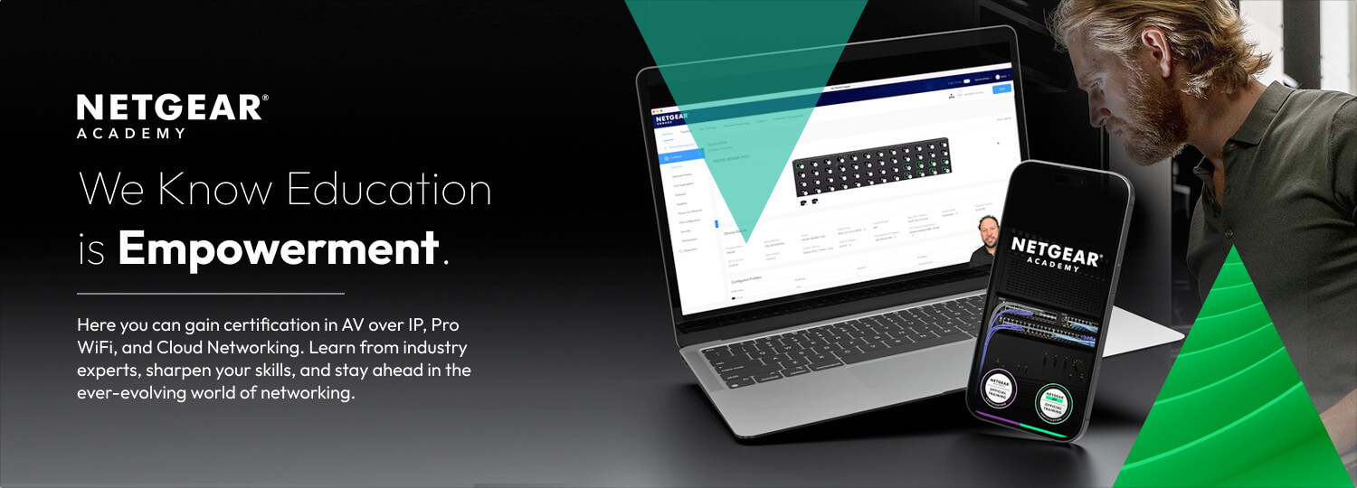 This training introduces NETGEAR AV managed switches, their key features, and how to design them into projects. It demystifies networking terminology across seven modules, building confidence in configuration and troubleshooting. By the end, you'll be ready to deploy these switches in AV over IP environments.